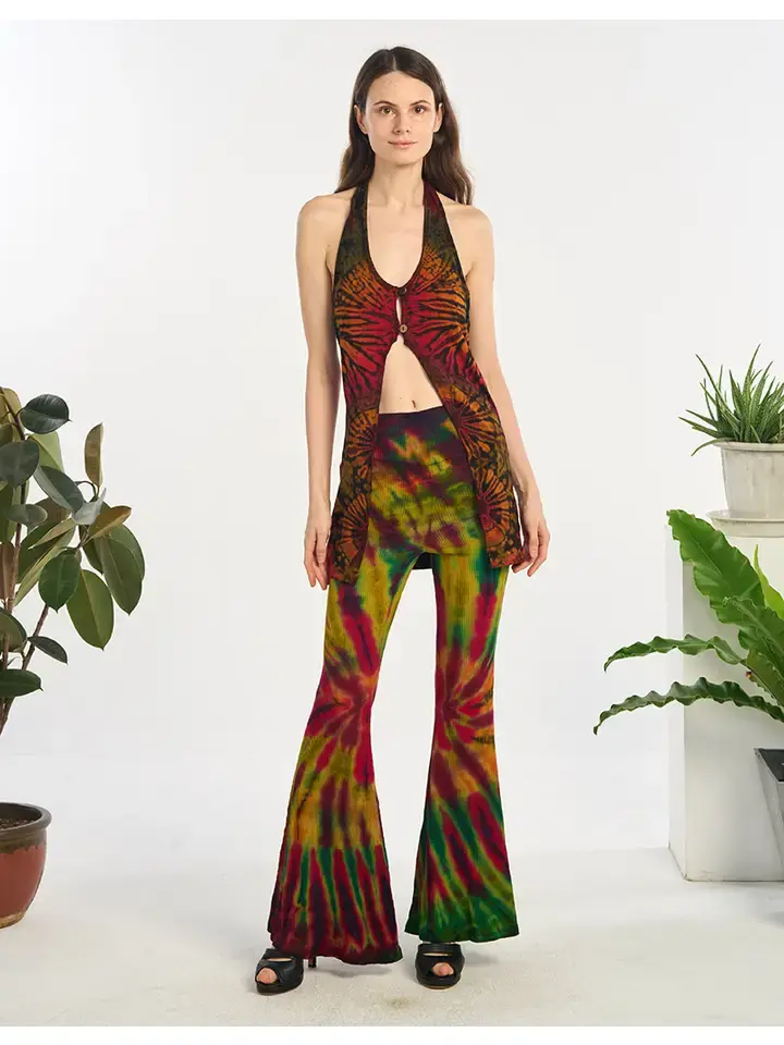 Tie Dye Open Front Halter Top- Free Size